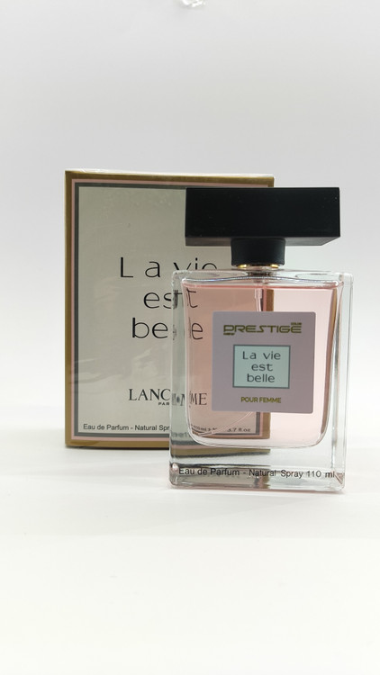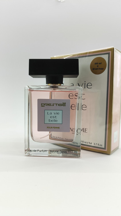 برند پرستیژ پرفیوم هایی تولید نموده که از لحاظ رایحه و ماندگاری بسیار مشابه نمونه های اصلی میباشند.این پرفیوم ها که قیمت بسیار مناسبی دارند جایگزین خوبی برای نمونه های اورجینال با هزینه های بالا هستند و رضایت شمارا به عنوان یک عطر خوب جلب میکنند.پرفیوم La Vie Est Belle، با داشتن رایحه ای گلدار، میوه ای، خوراکی و ماندگاری بالا، مناسب برای ماه های سرد سال و یا میهمانی های نیمه رسمی شبانه است. رایحه وانیل ، نعنا هندی ، گل یاس، زنبق و شکوفه پرتقال به کار رفته در آن همچنین رایحه تلخ بادام به راحتی در میان ترکیباتش قابل استشمام می باشد. این محصول سرشار از شادی، لذت ، فریبندگی و هیجان است و با رایحه ی غالب بادام تلخ ، وانیل و نعناع هندی برای بانوان بالای 35 سال مناسب تر می باشد و از میزان پراکنندگی عالی برخوردار است .